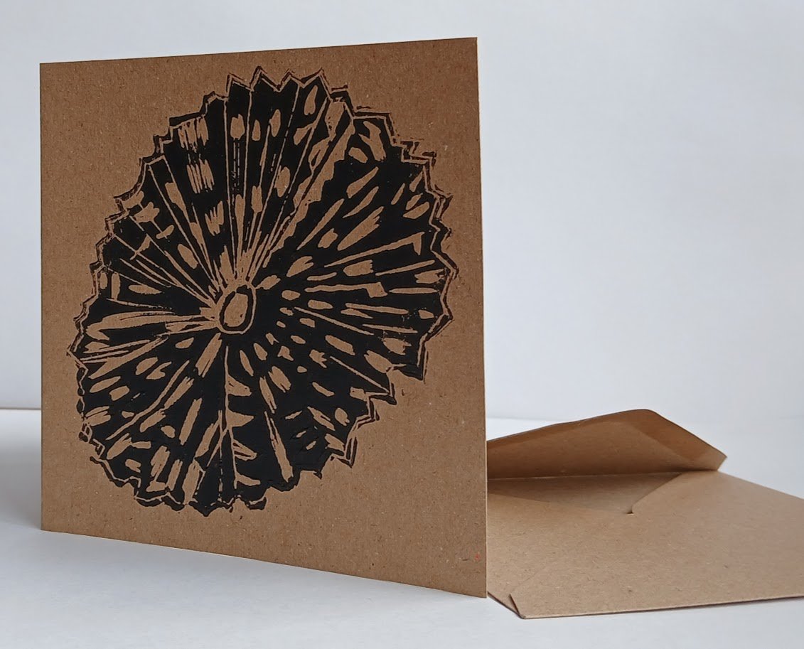 Hand printed greeting card on recycled card